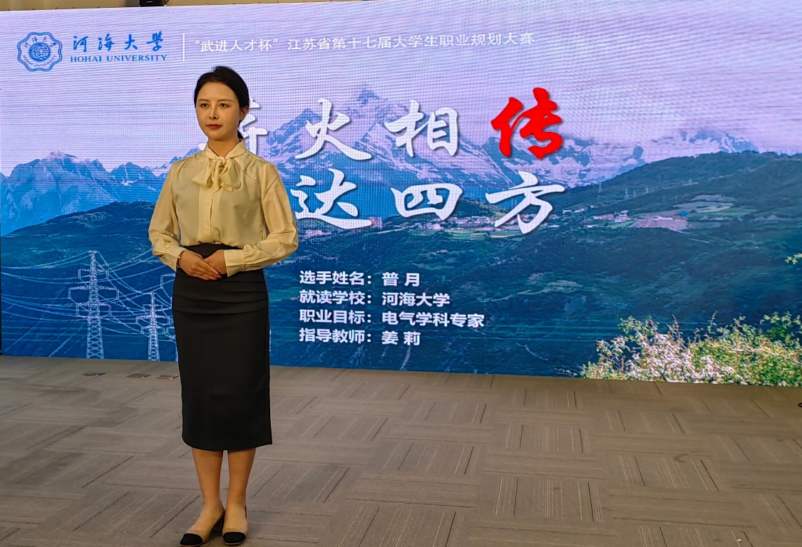 此次大赛以“生涯逐梦,职赢未来”为主题,分设研究生、本科生和专科生三个赛道。比赛自2022年9月份启动,全省各大高校高度重视,广泛发动。经过激烈角逐,普月同学从50余所高校的95名选手中脱颖而出晋级总决赛。在指导教师的精心指导下,以任职高校电气学科专任教师为职业目标,通过生涯规划展示、职业体验陈述等环节,全方位、个性化地展现了不断拓宽培养科研创新、项目管理、团队协作以及教育教学等多方位能力维度的职业规划路径,分享了深耕基层、成果丰硕的科研及育人历程,展望了怀揣“电气人”的情怀和梦想,与国家发展和民族振兴同向同行,将薪火相传,让电达四方的职业理想。