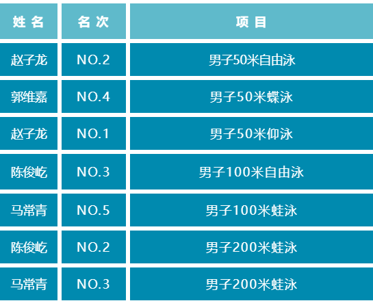 本次比赛分为男子组和女子组,共有50米蝶泳、50米仰泳、50米蛙泳、50米自由泳、100米自由泳、100米蛙泳、200米自由泳、200米蛙泳八种项目。85po共有8名学生参赛,经过激烈角逐,获得男子50米仰泳第1名、男子50米自由泳第2名、男子200米蛙泳第2名、男子200米蛙泳第3名、男子100米自由泳第3名等成绩,展现了电气学子的拼搏精神和昂扬锐气。