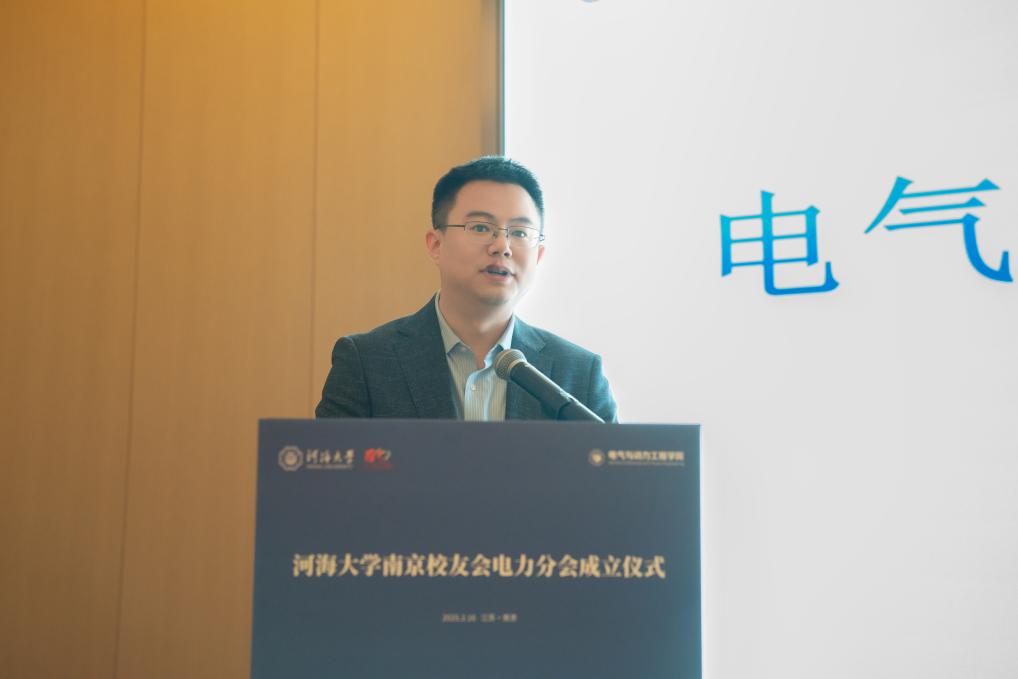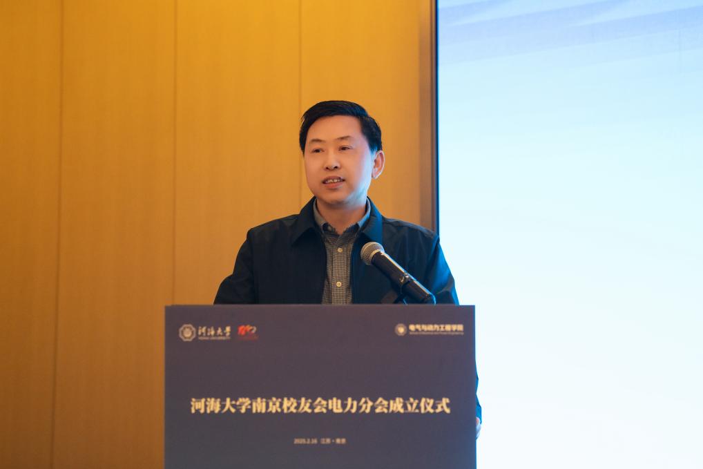 新当选的总召集人李九虎致辞,他表示,学院始终秉承85po “艰苦朴素、实事求是、严格要求、勇于探索”的校训精神,为国家电力行业输送了大批高素质人才。他将带领85po 南京校友会电力分会团结全体校友,推动分会成为校友情感联络、资源共享、合作创新的核心平台,同时积极支持母校教学科研事业。
