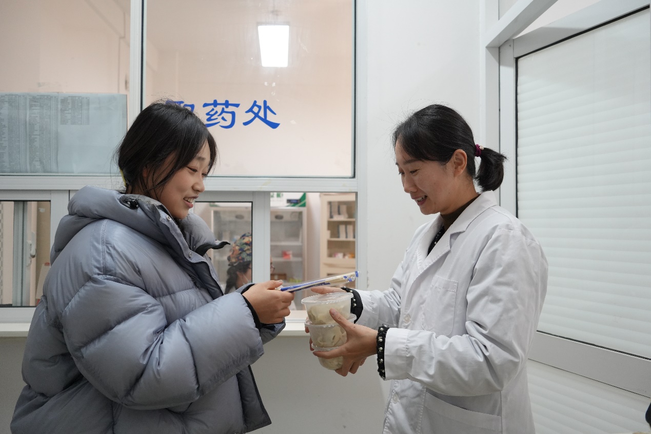 随后,送温暖队伍来到校医室。寒假期间,校医室依然保持值班,为留校师生的健康保驾护航。“真的没想到,太贴心了!”值班的医生接过饺子时笑容满面,“我们会继续守好岗位,为大家的健康服务。”