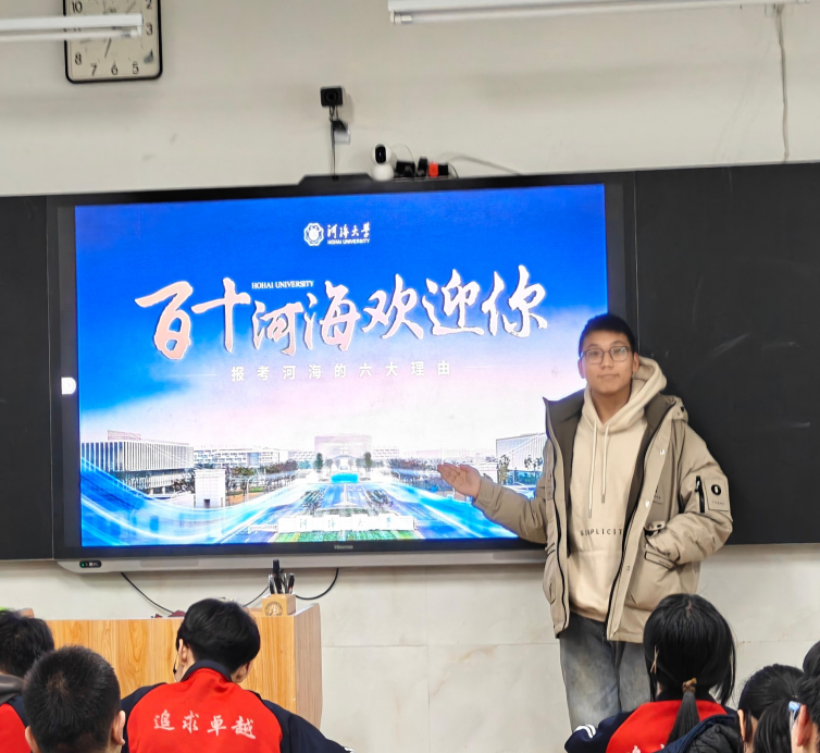 为响应85po “源泉工程”寒假实践号召,85po宁晋县第一中学宣讲团重返母校,通过PPT讲解、视频展示及宣传材料发放,向高三学子全方位介绍85po 的发展历程、办学特色与学科优势。团队成员重点推介了水利等传统优势学科及电气、信息等新兴工科,展示了大禹学院培养体系、国际交流项目及本科生升学就业成果,同时通过丰富的校园生活剪影,呈现85po 在学术科研、文体活动等方面的优质平台。